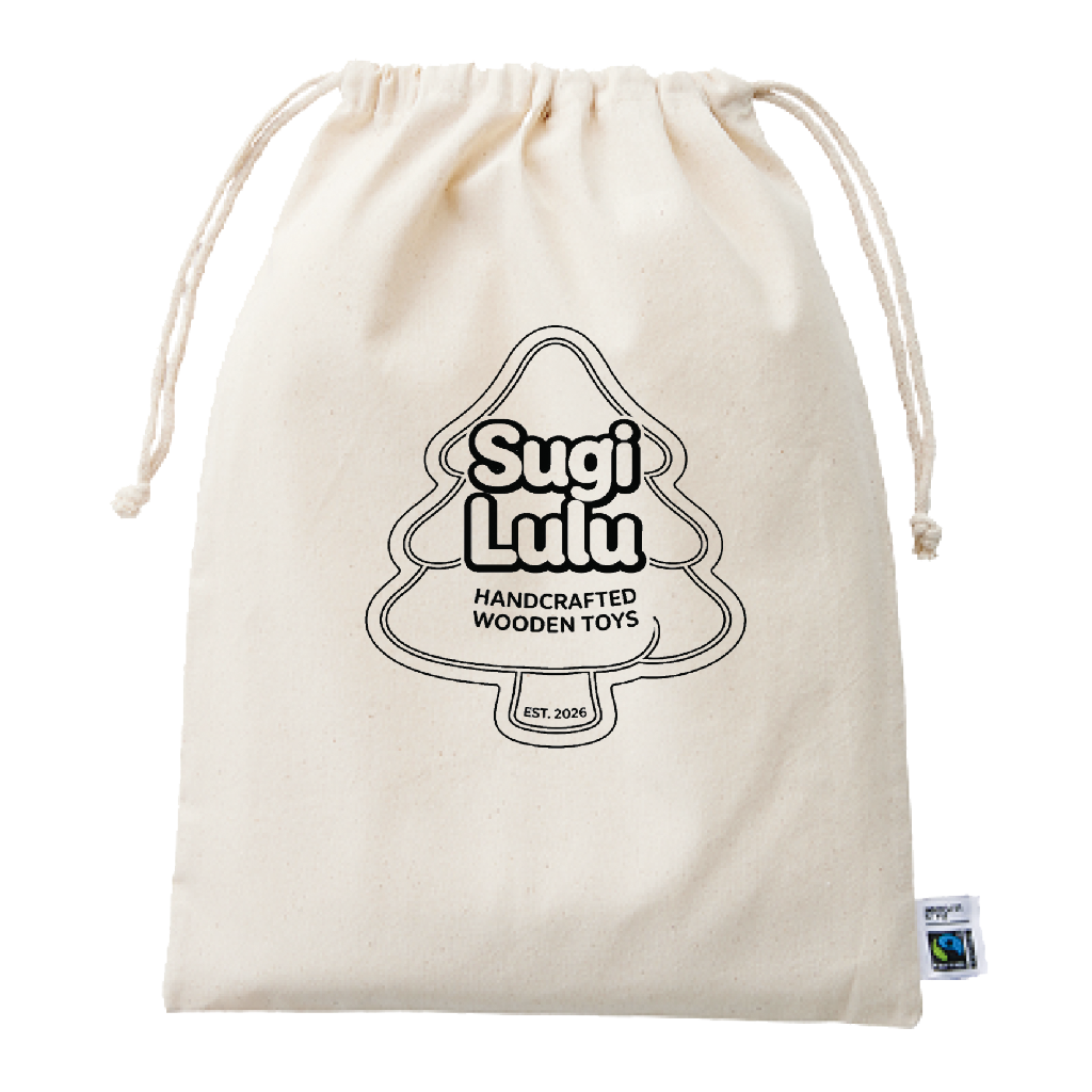 巾着はフェアトレード製品(国際フェアトレード認証ラベル付きの地球にやさしい素材です)